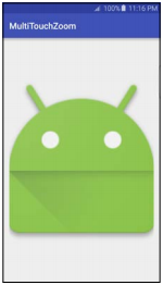 Anteriormente se utiliza SimpleOnGestureListener para proporcionar detección de gestos sencillos de un solo dedo. En este caso demostraremos multitáctil con el gesto común de zoom usando la clase SimpleOnScaleGestureListener.